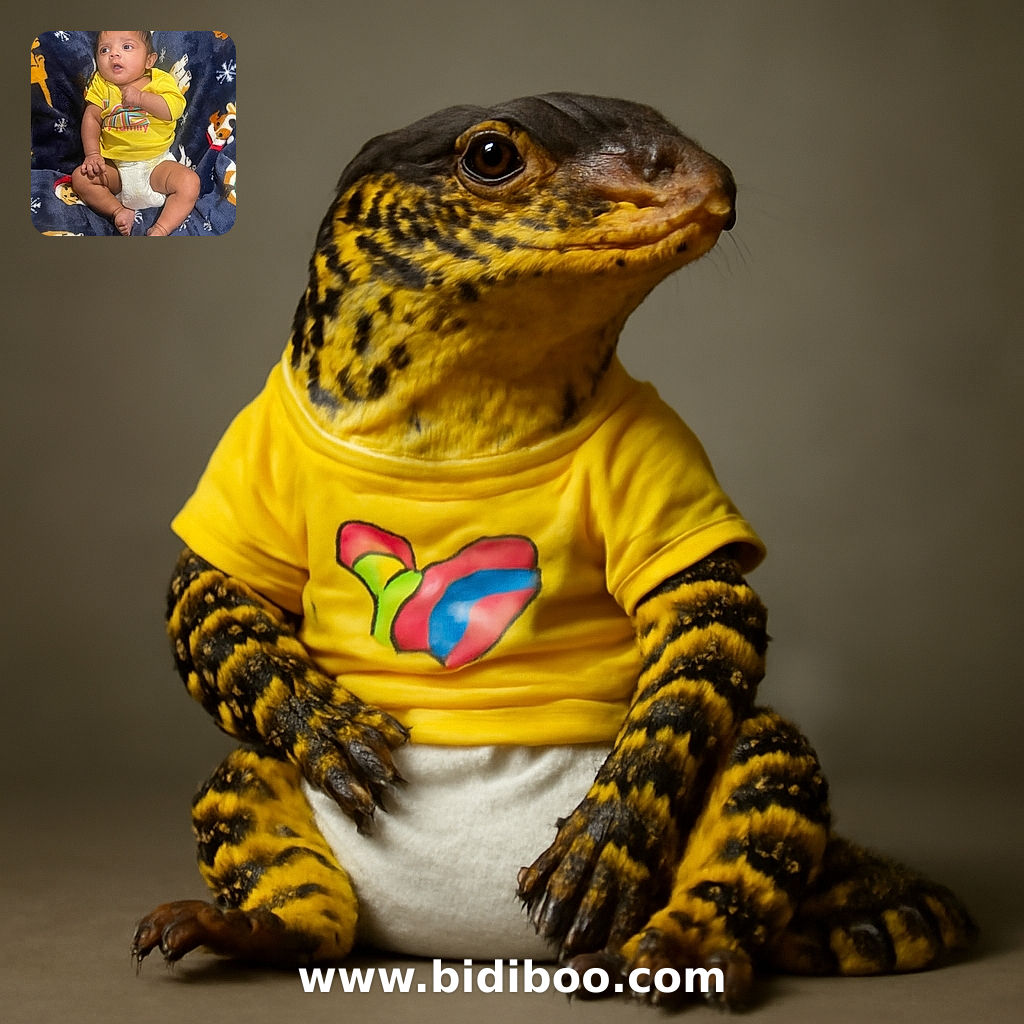 • A close-up of a curious baby with big expressive eyes and an open mouth, wrapped in a swirl of vibrant blue and green fabric, as if reaching out to the camera with wonder.