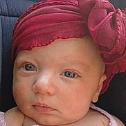 • Eden is registered to the contest to win money with this photo: baby, infant, face, headwrap, bow, pink_clothing, blue_eyes, close_up, portrait, child, cute, skin, expression, headgear, newborn, young_child, soft_light, indoors, baby_girl, fashion_accessory